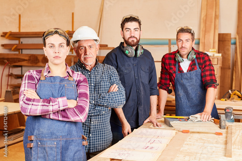 Handwerker mit Lehrlingen in der Schreinerei
