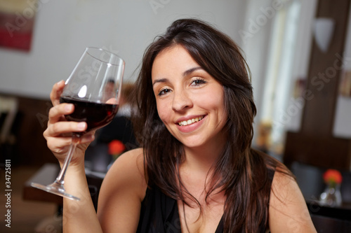 Frau mit Rotweinglas im Restaurant
