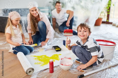 Junge mit Wasserwaage hat Spaß beim werken mit Holz