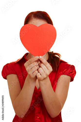 Frau hält rotes Herz zum Valentinstag oder Muttertag