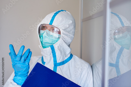 Doctor in protective clothing takes break due to burnout in coronavirus pandemic