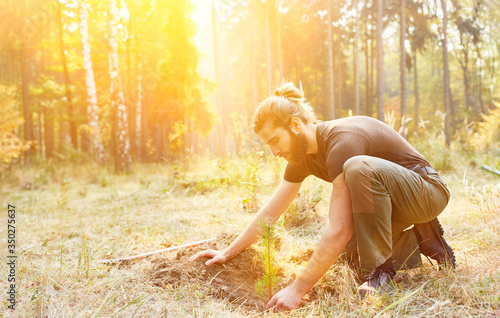 Mann beim Baum pflanzen für Nachhaltigkeit