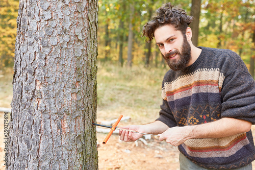 Forstwirt mit Zuwachsbohrer bei Erregeridentifikation