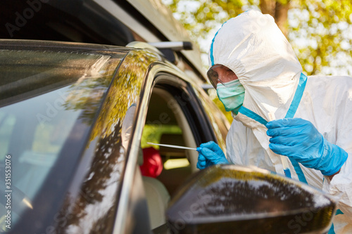 Rachenabstrich für Coronavirus Test bei Drive-In Teststation