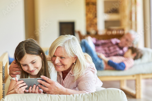 Oma lernt von Enkelsohn das Schreiben einer SMS