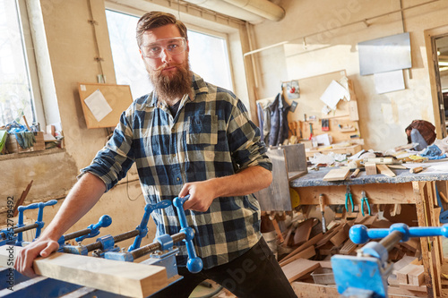 Tischler Lehrling arbeitet als Möbelbauer mit Holz