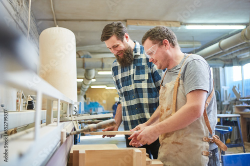 Zwei Möbelbauer mit Holz Möbel Werkstück