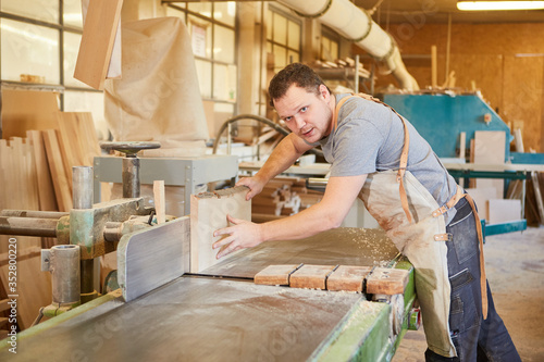 Tischler Lehrling arbeitet an der Hobelmaschine