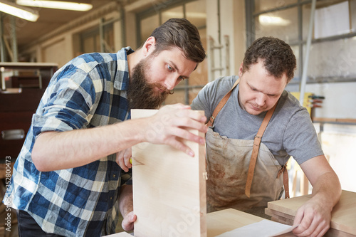 Tischler Ausbilder und Lehrling in der Tischlerei