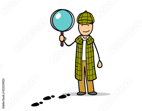 Cartoon Detektiv oder Privatermittler mit großer Lupe