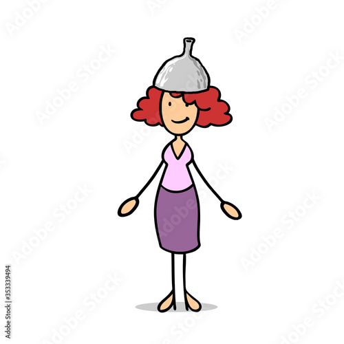 Cartoon Frau mit Aluhut als Verschwörungstheoretikerin