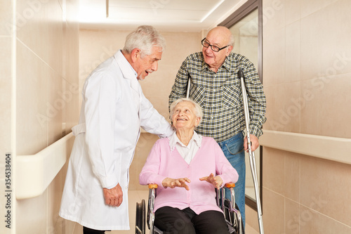 Zufriedener Senior nach Schlaganfall mit Gehhilfe
