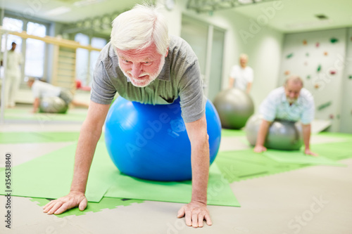 Gruppe Senioren beim Rehasport an der Ballettstange