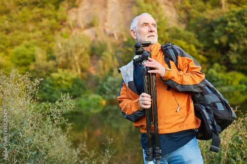 Älterer Fotograf als Landschaftsfotograf in der Natur