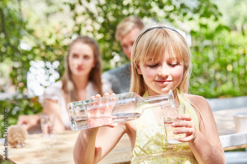 Familie zeigt bunte Zeichnung mit Eigenheim