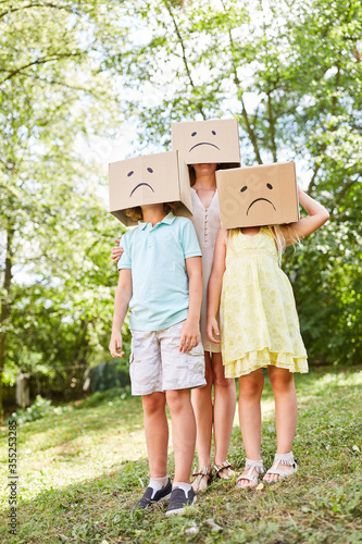 Familie zeigt bunte Zeichnung mit Eigenheim