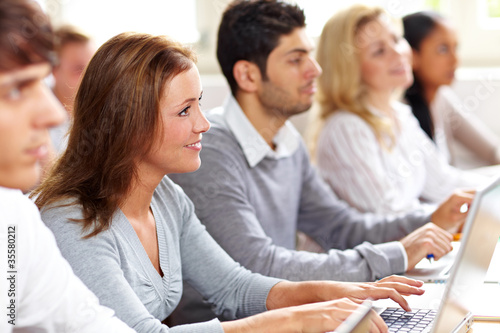 Studentin im Seminar mit anderen Studenten