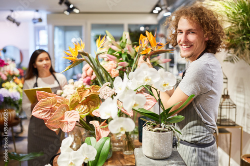 Young florist in training nurses flowers