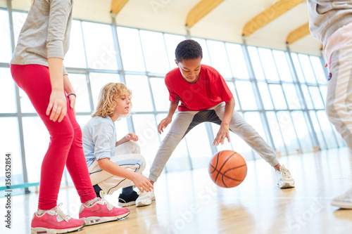 Gruppe Kinder bildet eine Basketball Mannschaft