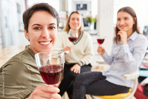 Zwei Frauen als Freundinnen stoßen auf Feier mit Rotwein an