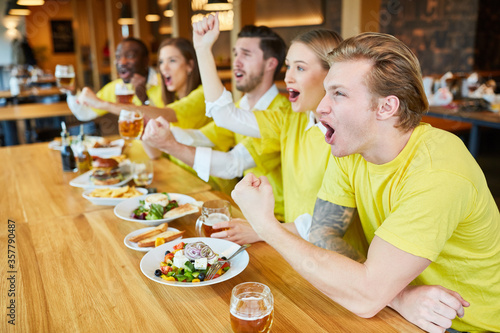 Fußballfans schauen Spiel einer Mannschaft im Pub