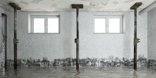 Wasserschaden nach Hochwasser im Keller mit Deckenstützen