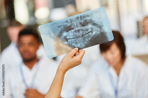 Dozentin zeigt in einem Seminar ein Röntgenbild