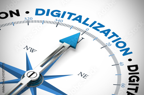 Digitalisierung Konzept mit Kompass und Schriftzug