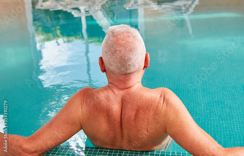Old man relaxes in the pool