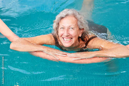 Senior in swimming pool at aquafitness