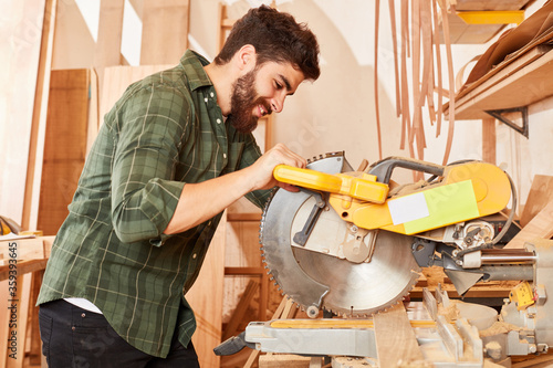 Schreiner Azubi arbeitet an der Kappsäge