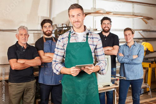 Handwerker Azubi mit Schreiner Team