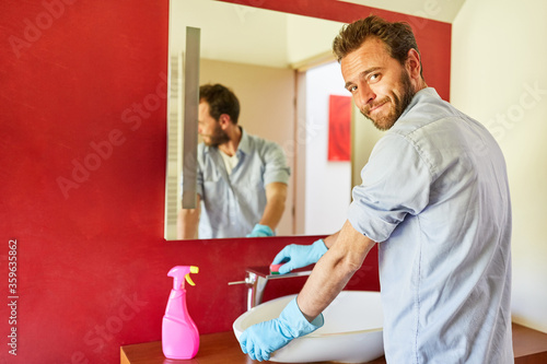Hausfrau mit Zitrone beim reinigen einer Schüssel
