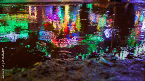 Reflexion bunter Lichter in Pfütze als Hintergrund