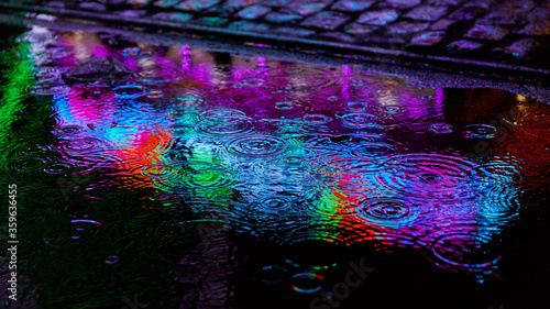 Colorful colors as a reflection in the water of a puddle