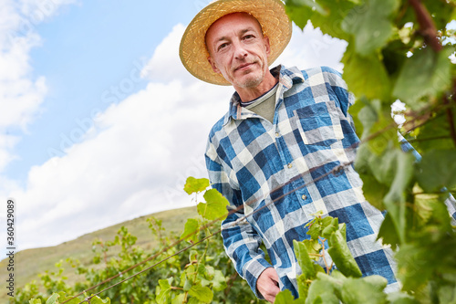 Erfolgreicher Weinbauer mit verschränkten Armen