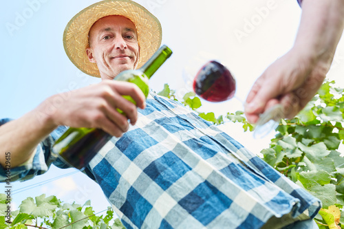 Erfolgreicher Weinbauer mit verschränkten Armen