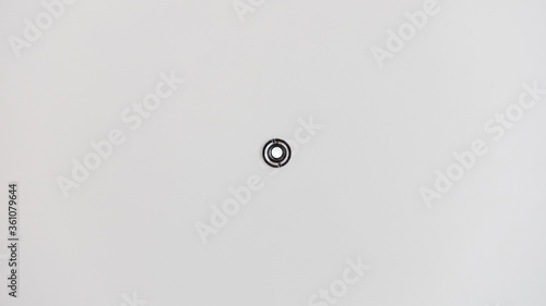 Zwei Rauchmelder und Glühbirne von unten an Decke im Raum