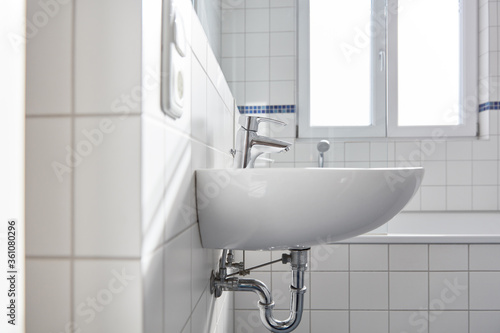 Waschbecken mit Wasserhahn im Bad zu Hause