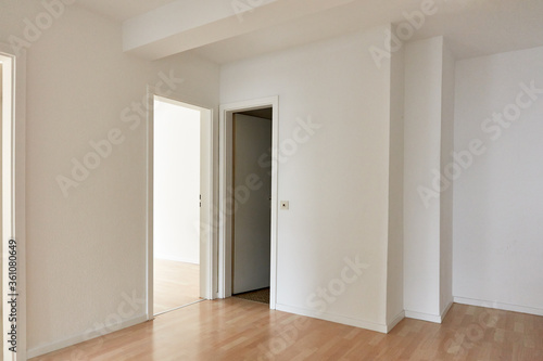 Großer leerer Raum mit Zimmertür nach Renovierung