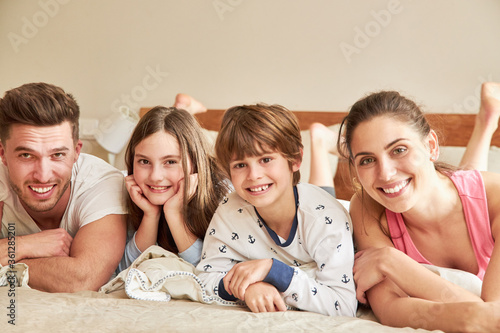 Glückliche Eltern mit zwei Kindern im Schlafanzug