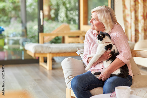 Glückliches Senioren Paar im Ruhestand mit Katze