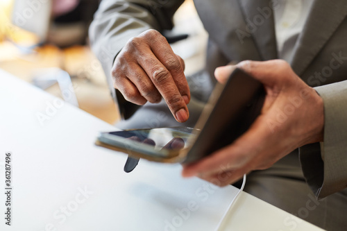 Afrikanischer Mitarbeiter in Videokonferenz am Computer