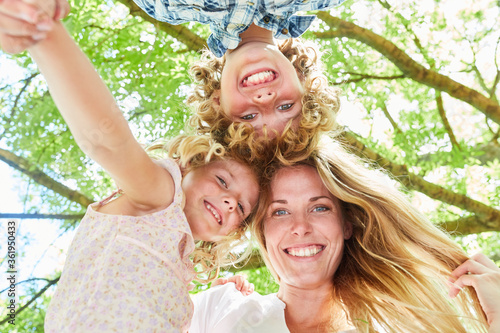 Fröhliche Mutter mit ihren zwei Kindern