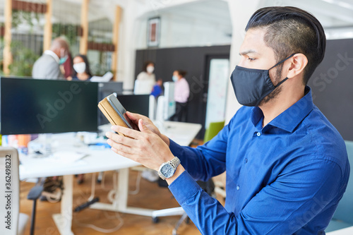 Junger Business Mann im Büro mit Mund-Nasen-Schutz