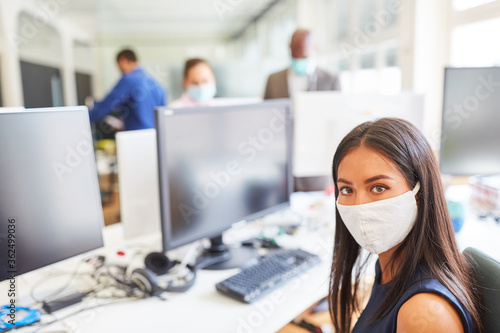 Geschäftsfrau mit Mundschutz beim Hände desinfizieren