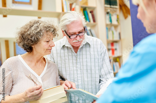 Senior Mann mit Büchern in einer Bücherei oder Bibliothek im Altersheim