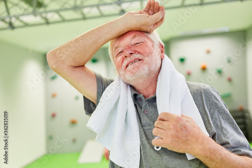 Senior with hand on forehead after workout