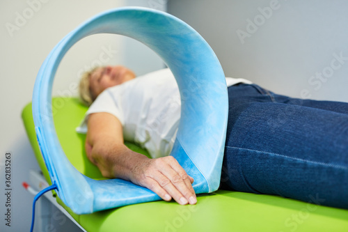 Seniorin bei Magnetfeldtherapie als Naturheilkunde