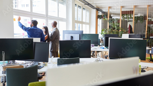 Team in project development in the open-plan office